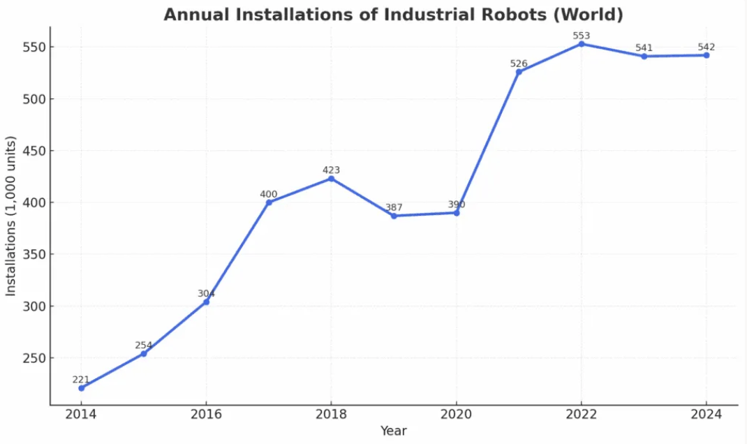 China now operates over two million industrial robots — more than all other nations combined — after installing nearly 300,000 new units in 2024. This reflects Beijing’s aggressive push to automate manufacturing via subsidies, state-backed lending, and policies like “Made in China 2025”