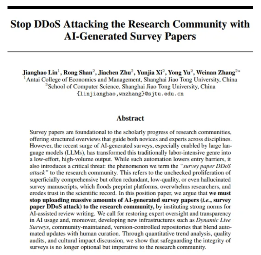 📄 A new paper warns of "survey paper DDoS" from AI-generated research