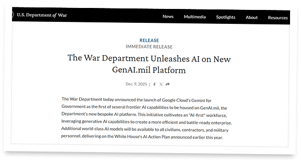 🔗 https://www.war.gov/News/Releases/Release/Article/4354916/the-war-department-unleashes-ai-on-new-genaimil-platform/
